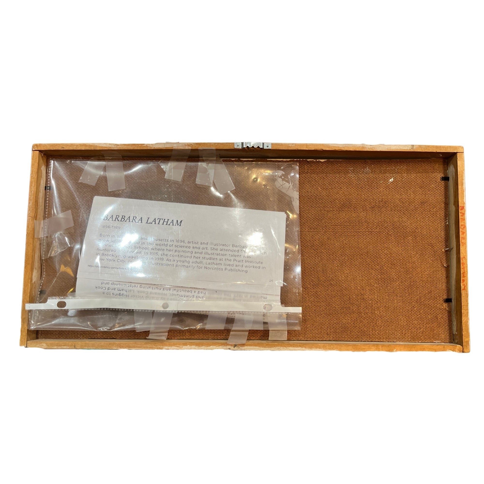Painter, print maker, and children’s book illustrator, Barbara Latham (1896-1989)  was born in Walpole, Massachusetts in 1896, and lived most of her life in the Southwest. She was raised in Norwich, Connecticut and studied at the Norwich Free Academy and then attended Pratt Institute from 1915 to her graduation in 1919. She then studied with Andrew Dasburg at the Art Students League summer school in Woodstock, New York. She spent the early part of her career in New York, where she worked for the Norcross Publishing Company, and did illustrations for Forum magazine and The New York TimesSunday magazine. In 1925, Latham went to Taos, New Mexico. She met artist Howard Cook, and the couple married in 1927. In 1933, they made their home near Taos, on the Talpa Ridge just south of the town.  In 1976, they made their final move, which was to Santa Fe. The artist created prints and paintings of New Mexico subjects: the Taos landscape, views of the town and genre depicting the seasons of rural life including that of the Taos Indians.