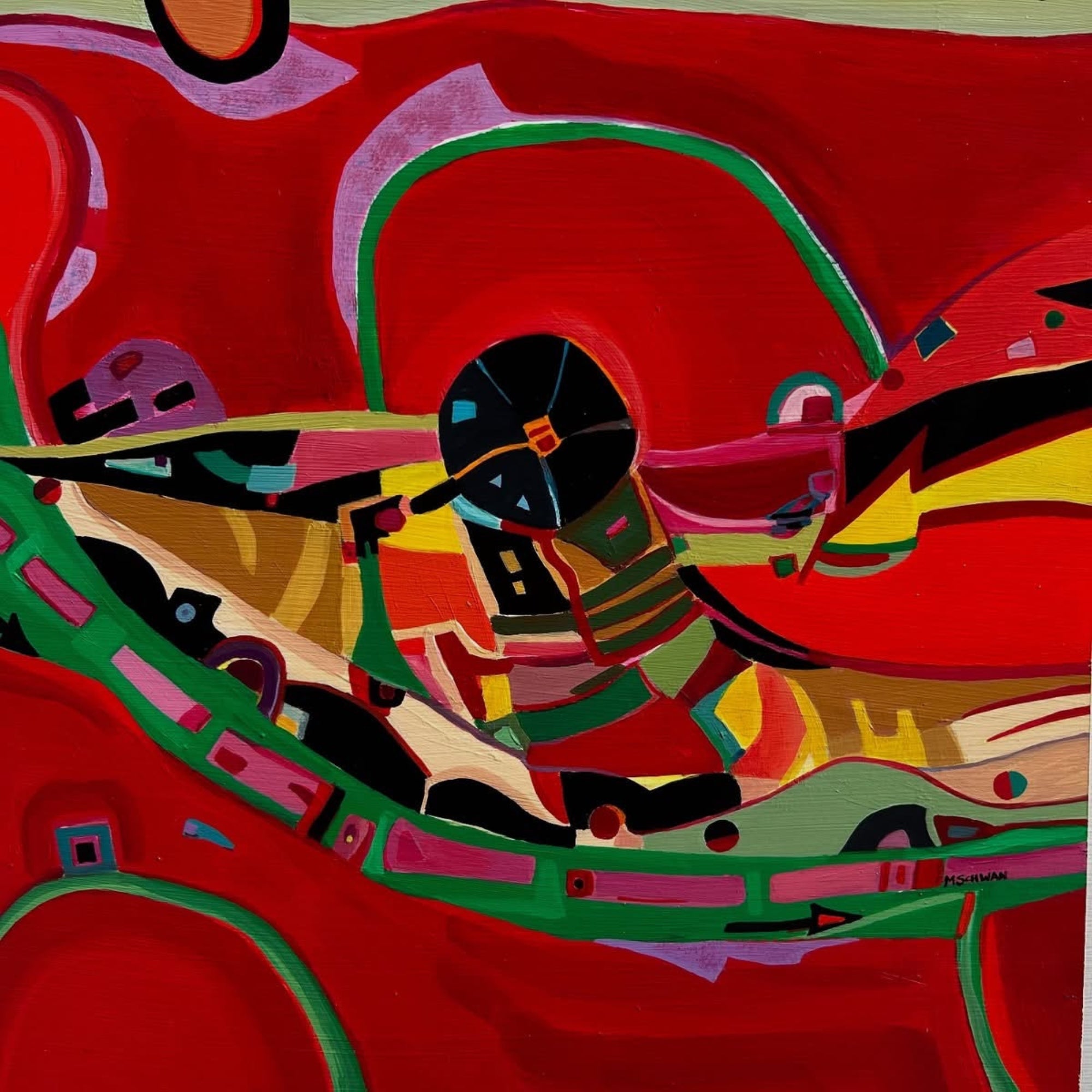Marcia Solomon Schwan (1930–2022) was an artist who resided in Tidewater, Virginia for nearly 70 years. Born in Baltimore, Maryland, she graduated from The Park School and earned her Bachelor of Arts degree in English from Goucher College in 1951. Art was a defining element in Schwan’s life — a passion that began in childhood, when she won first prize in a competition hosted by The Walters Art Museum, and continued throughout her life. While painting daily in her home studio, she audited art classes at Old Dominion University taught by artists Charles Sibley and Norman Goodwin, who became both mentors and friends. Schwan developed cherished friendships with numerous fellow artists locally, and her work was exhibited alongside theirs in museum and gallery settings.
